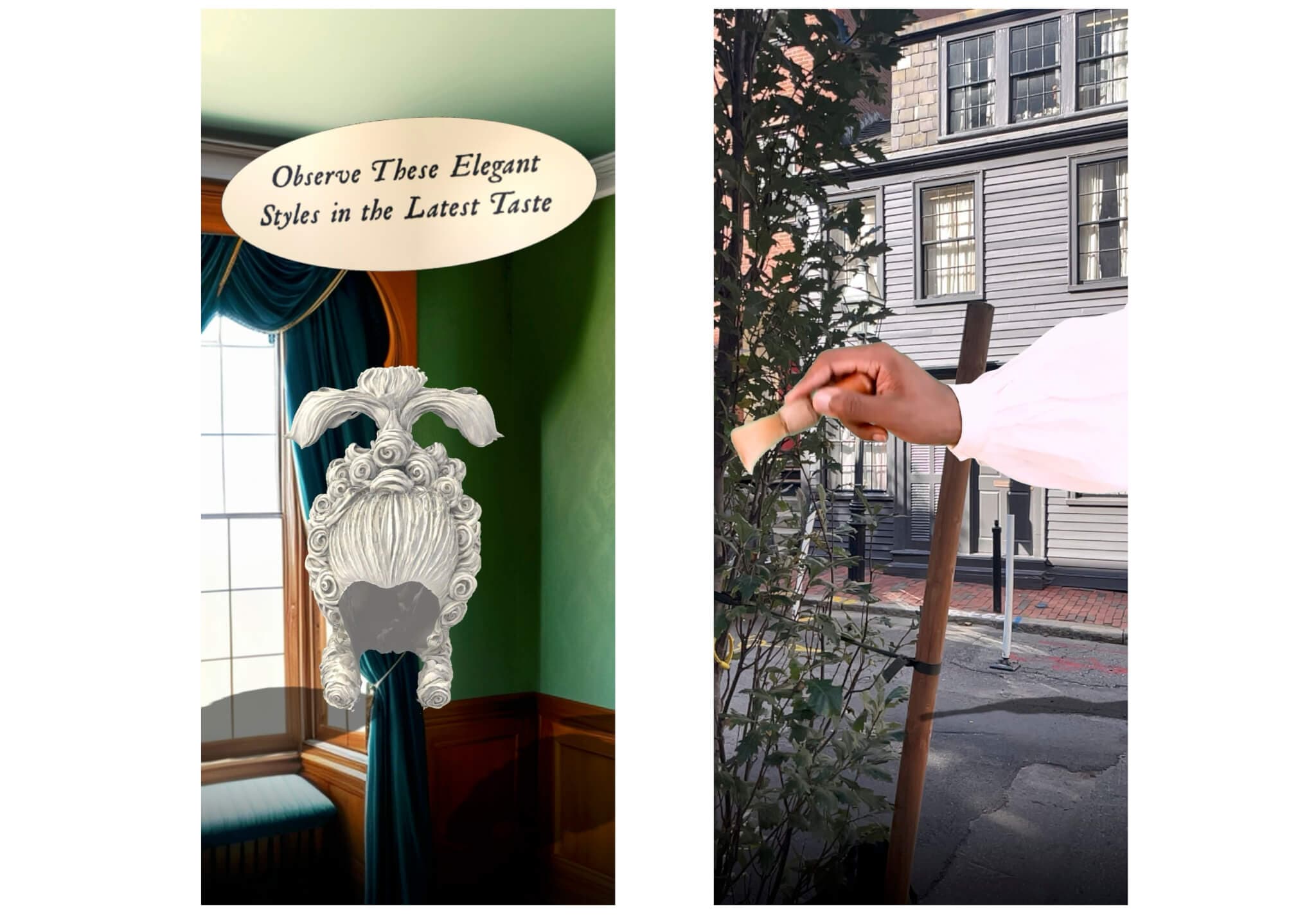 “Hidden Histories” is a series of four public art projects hosted by Emerson Contemporary, in collaboration with the City of Boston’s Un-monument initiative, featuring artists Elisa Hamilton, Clareese Hill, Sue Murad, and Kameelah Janan Rasheed. As community research fellows, each artist was granted access to the Boston Athenaeum, Historic New England, and the Massachusetts Historical Society, as well as ample time for sheer exploration. Earlier this month, I spoke to Hill and Hamilton about their augmented reality works in the heart of Beacon Hill that were developed from their research. Hamilton’s project Glimpses of Glapion offers vignettes of Louis Glapion, a French West Indian–born barber and hairdresser who made a home and a career in Boston. In The Black Boston Dream Oracle, Hill unwraps the hauntology of archival objects and queries the capacity of new technologies to render them in our present moment. Hamilton and Hill’s projects can be experienced by downloading the AR platform Hoverlay on a smartphone or tablet, searching for the Un-monument channel, and heading into Beacon Hill to find the sites marked on the map provided through the application. The works are at once site-specific and augmented reality: there, but not there. For many, this presentation and the manner of accessing it will mark a unique and unfamiliar encounter with art. With patience and an appetite for exploration, visitors will trek through Beacon Hill to unveil its Black histories and understand the neighborhood anew.
