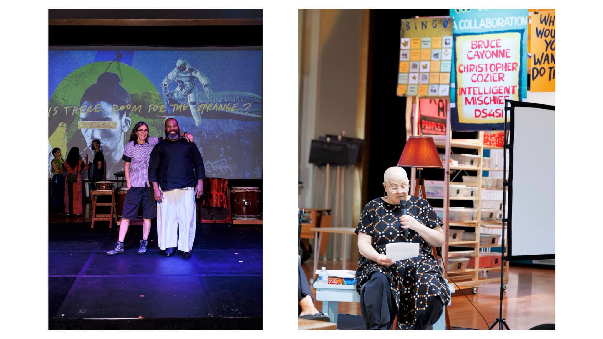 (left) DS4SI co-founders Lori Lobenstine and Kenneth Bailey. (right) Ecologies of thought lead, Judith Leeman, giving a talk at the DS4SI 20 Questions for 20 years event. Photo by Obinna Ojimba. Courtesy of DS4SI.
