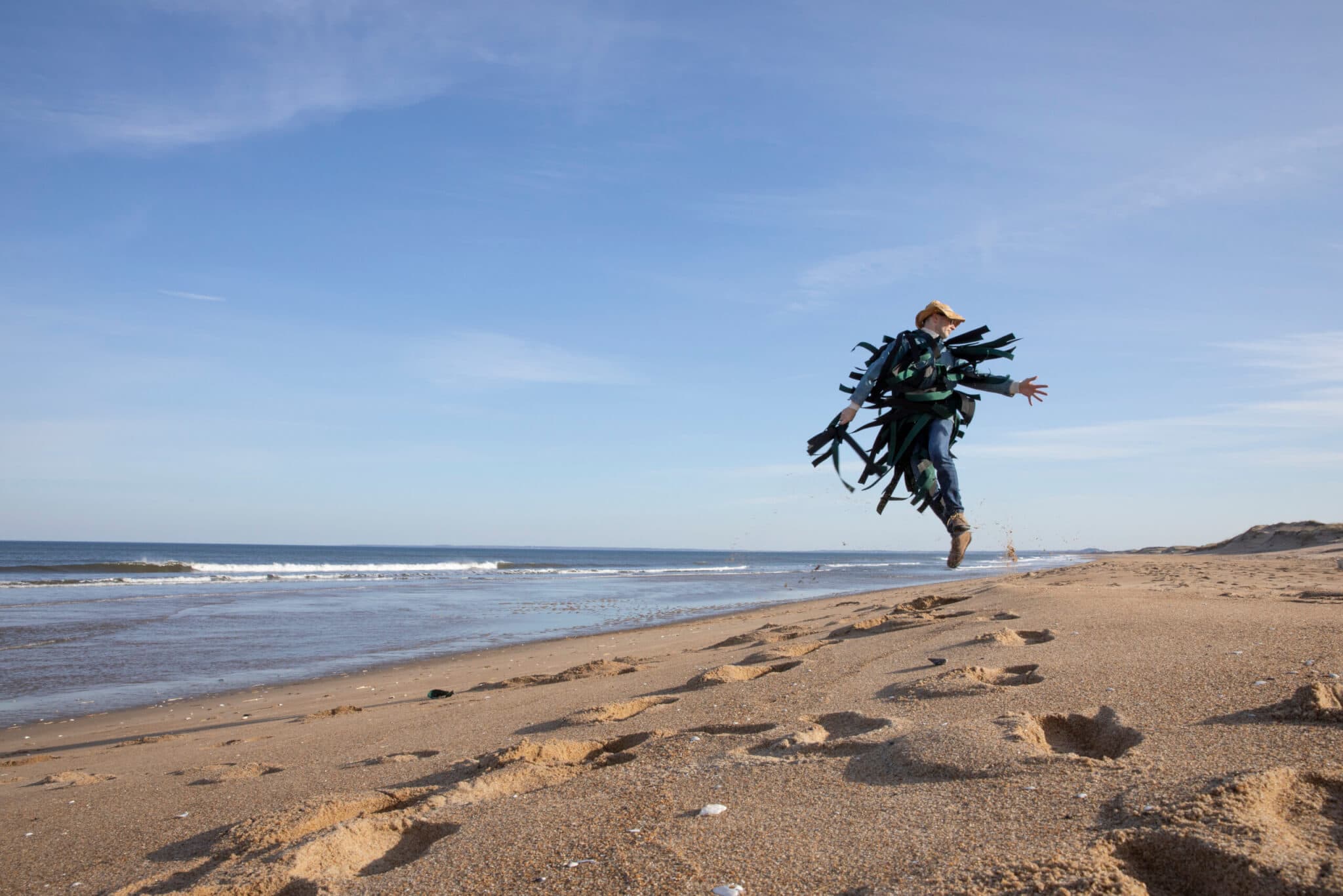 EM: I started thinking about performance when collaborating on film projects with Vita. She was trained as a videographer and photographer, so she was behind the camera, and I performed more often. I love thinking about the physicality of the human form and how we can suggest emotion and intent through gesture and motion. I wear costumes for my work, and being covered, I feel so much more capable of letting my body try things: twists, turns, jumps, and stumbles. Danielle Abrams, who sadly passed away, was a longtime friend and colleague at SMFA who helped me say out loud that I was a performance artist. It’s so funny, these simple things people say. It probably moved through her mind quickly, but it was so important to me to affirm that as a component of my practice.
