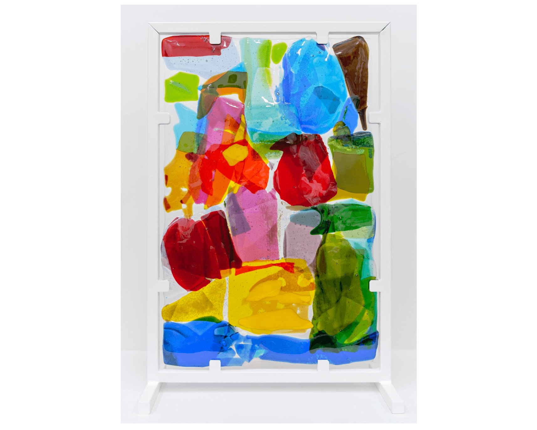 Marley Freeman, ice glistens, 2023. Fused glass 30 ¼” x 19 ½” x ⅝”. Photo courtesy of the artist.