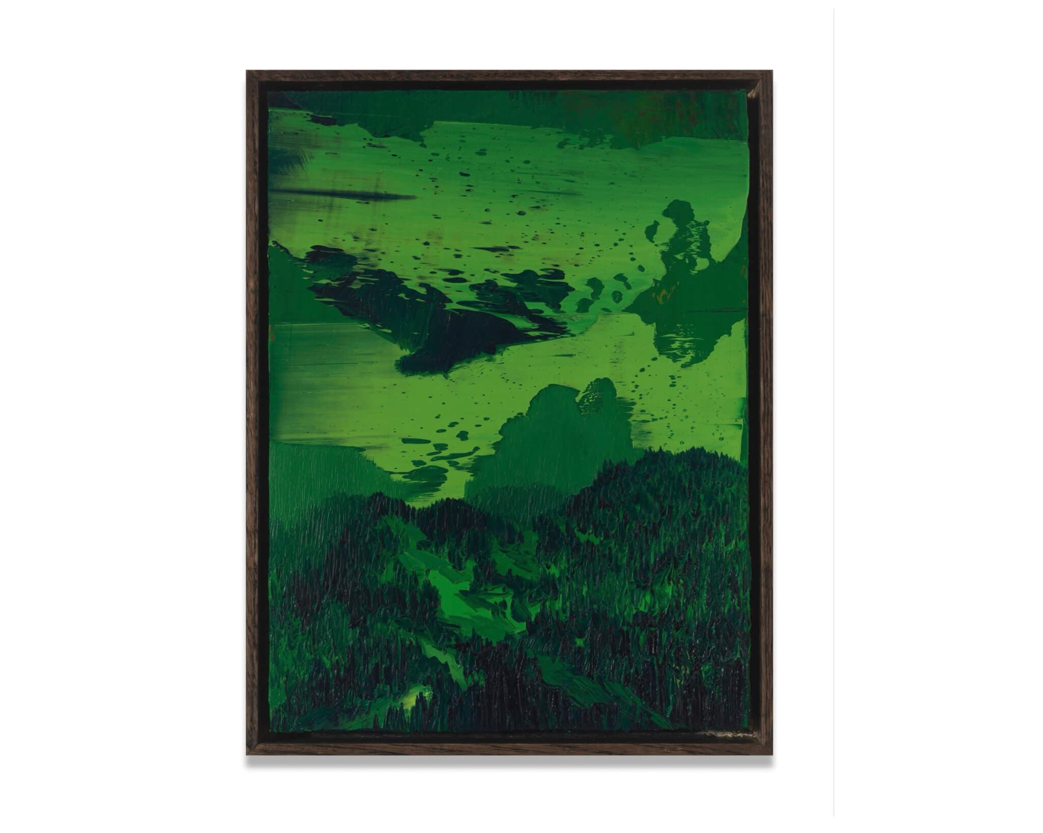 Cologne-born, Somerville-based Wilhelm Neusser is not a landscape painter—at least not in the traditional sense—though he does render specific geographical locales in his work. Instead, Neusser—who exhibits widely and lectures in art, painting, and drawing at Boston University—deploys this genre as a means of confronting climate change, evoking interior experience, and reflecting on the sublime in nature. A group show at Corey Daniels Gallery in Wells, Maine (on view through August 31, though Neusser’s work will remain there through the fall), highlights his orange marsh paintings and a dozen smaller “night vision” paintings redolent with emerald shades.