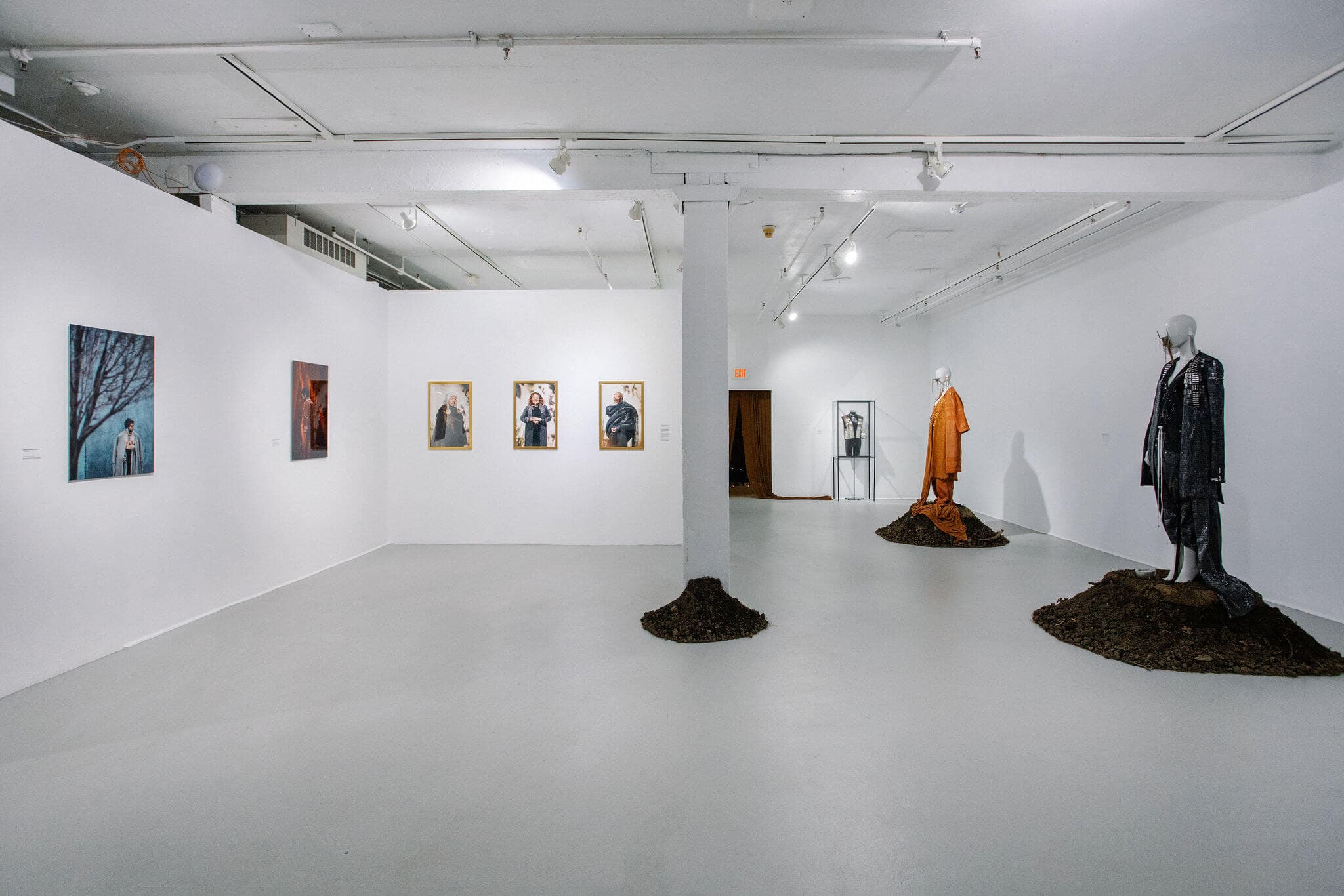 What if Spanish colonizers had never reached the shores of the Americas? Boston-based Colombian American artist and designer Christian Hernán De Restrepo Zúñiga Velázquez Betancourt imagines answers to that animating question in “A Él Mismo.” Bridging fashion and sculpture, De Restrepo’s textile works and jewelry draw on deep research, coaxing motifs from millennia-old archaeological sites and Inguapi Period statuary. Stapled fabric, fringe, dramatic draping, and other embellishments in gold, copper, and silver shades nod to tumbaga, an alloy used in pre-Hispanic metalwork to craft ritual objects, while the wonderfully jarring jewelry might have you seeing the familiar features of the human face in new ways. Modeled in some cases by his own family members, these pieces honor the artistry of his ancestors but feel of the moment—even of the future. —Jacqueline Houton